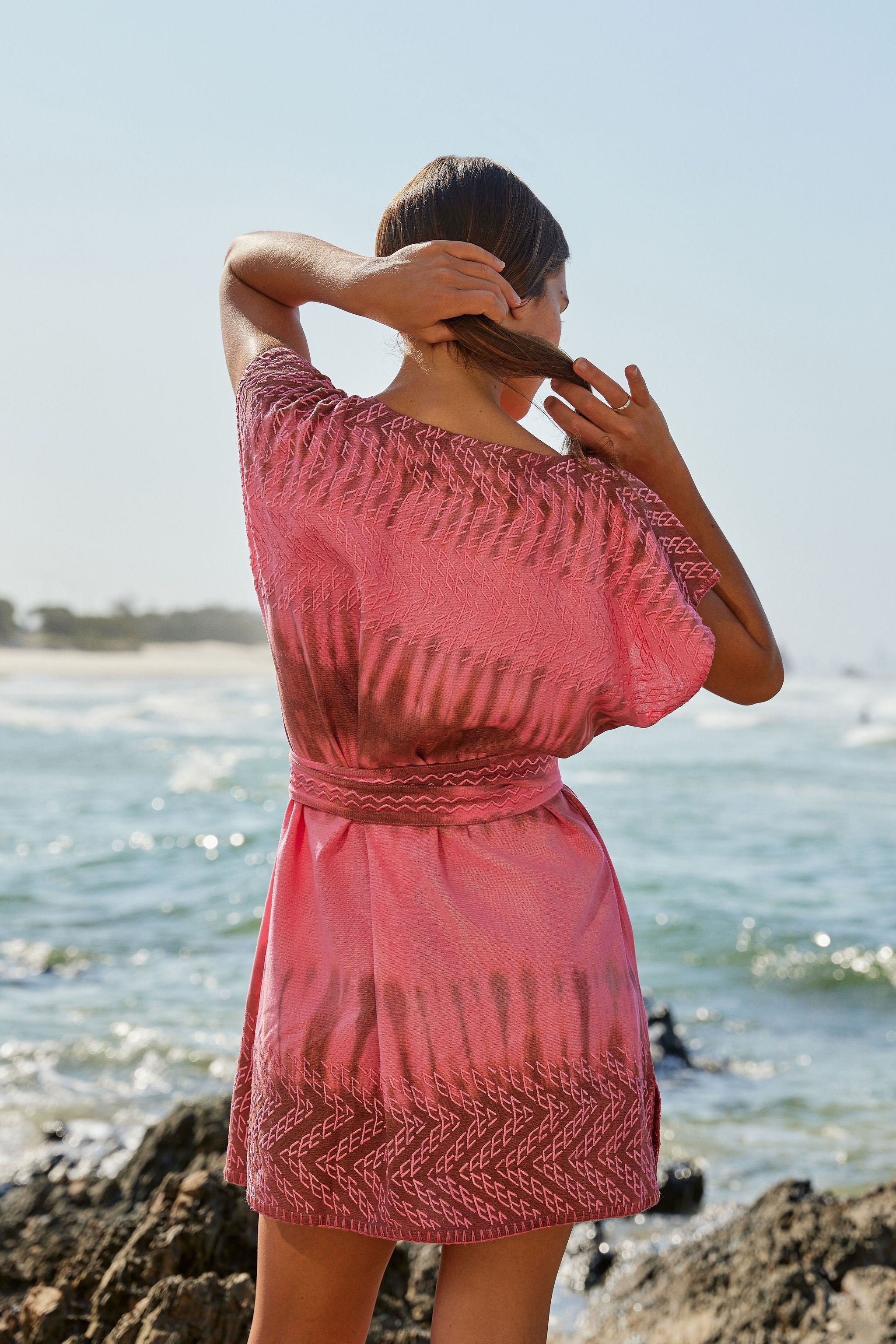 This isn't just another dress. It's your beach-to-brunch essential, your holiday hero, your "throw it on and look amazing" solution. The flattering mini length hits at just the right spot, while delicate capped sleeves frame your shoulders beautifully. The embroidery takes around 5 hours for each piece & is pure artistry.